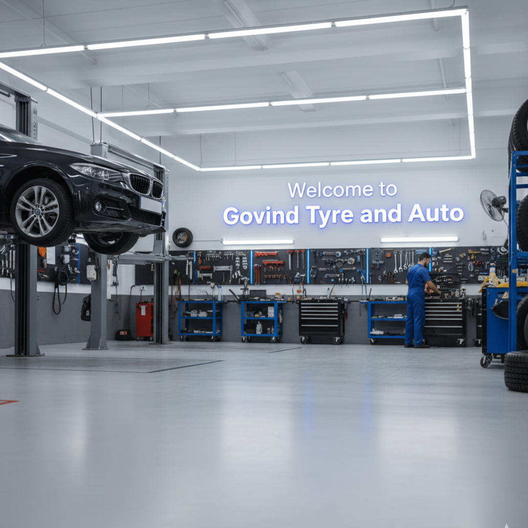Premium tyres, wheel alignment, balancing, puncture repair & car servicing under one roof. Visit Govind Tyre & Auto for trusted service & best prices. Call now!